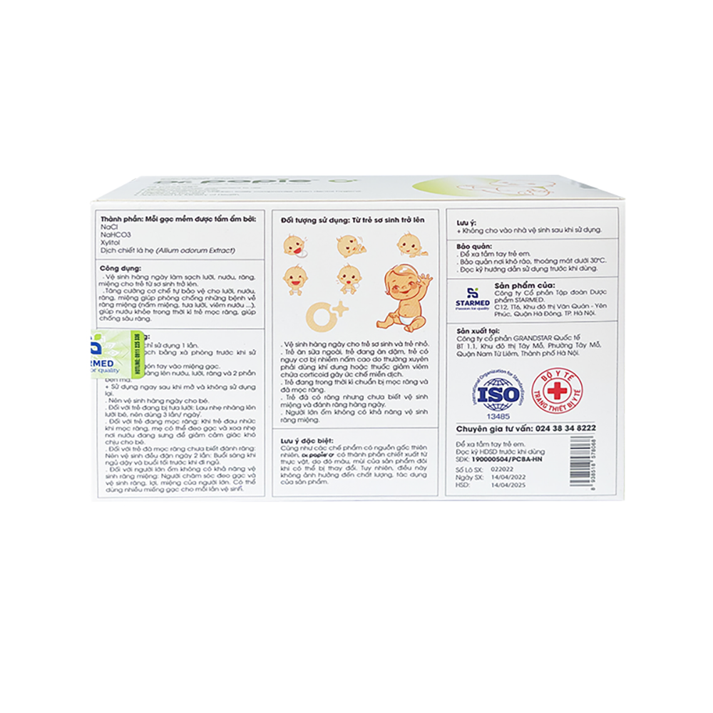 - Chất liệu gạc mềm mại, không làm đau, xước miệng