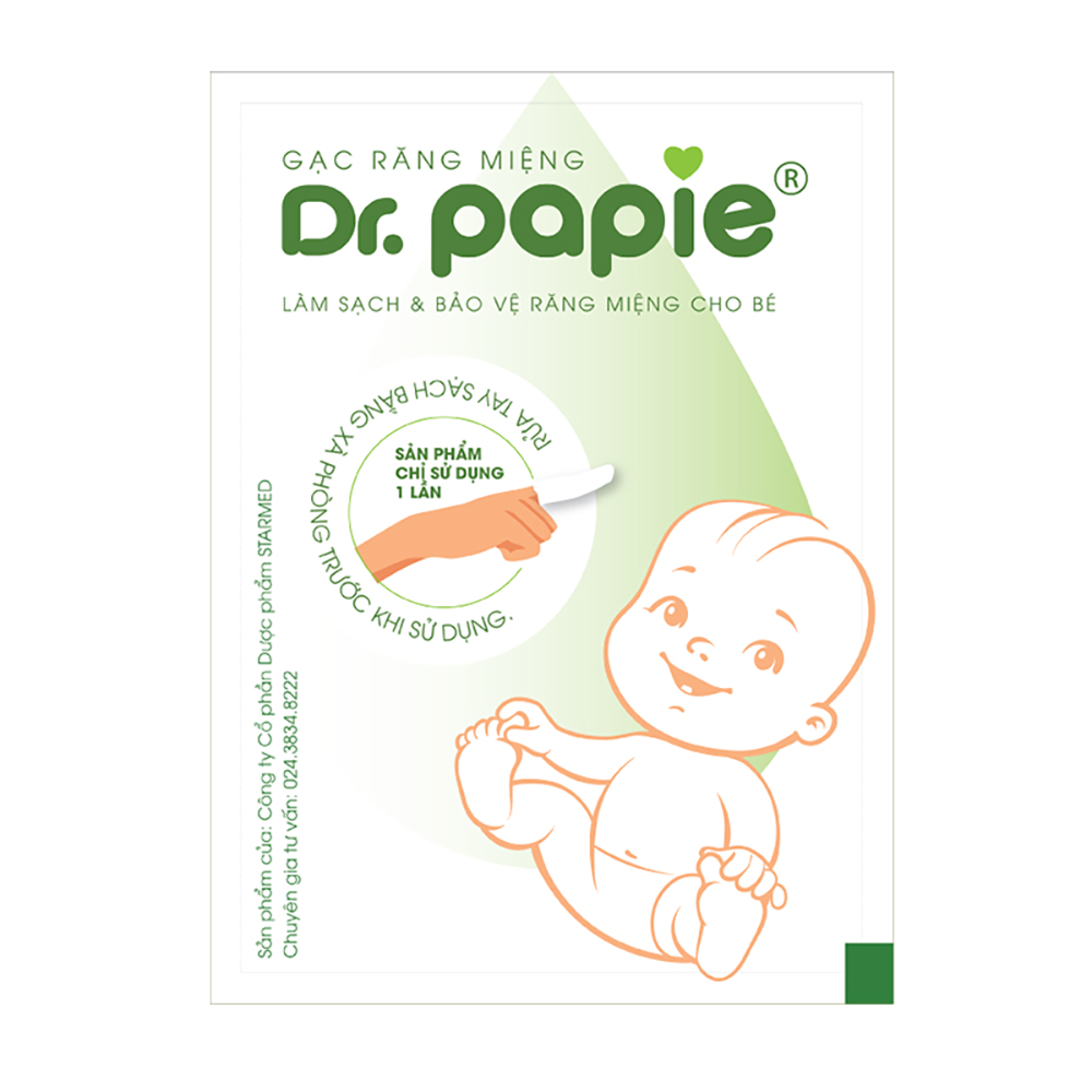 Gạc rơ lưỡi Dr.Papie là sản phẩm chăm sóc răng miệng an toàn cho trẻ sơ sinh và trẻ nhỏ. Gạc Dr.Papie đã được Bộ Y tế cấp phép là trang thiết bị y tế loại A, và lưu hành trên toàn quốc. Gạc rơ lưỡi Dr.Papie cũng là sự lựa chọn tin cậy của rất nhiều chuyên gia, bác sĩ Nhi, Nha khoa của các bệnh viện lớn: bệnh viện Phụ sản Trung ương, bệnh viện Nhi Trung ương, bệnh viện Thu Cúc,…