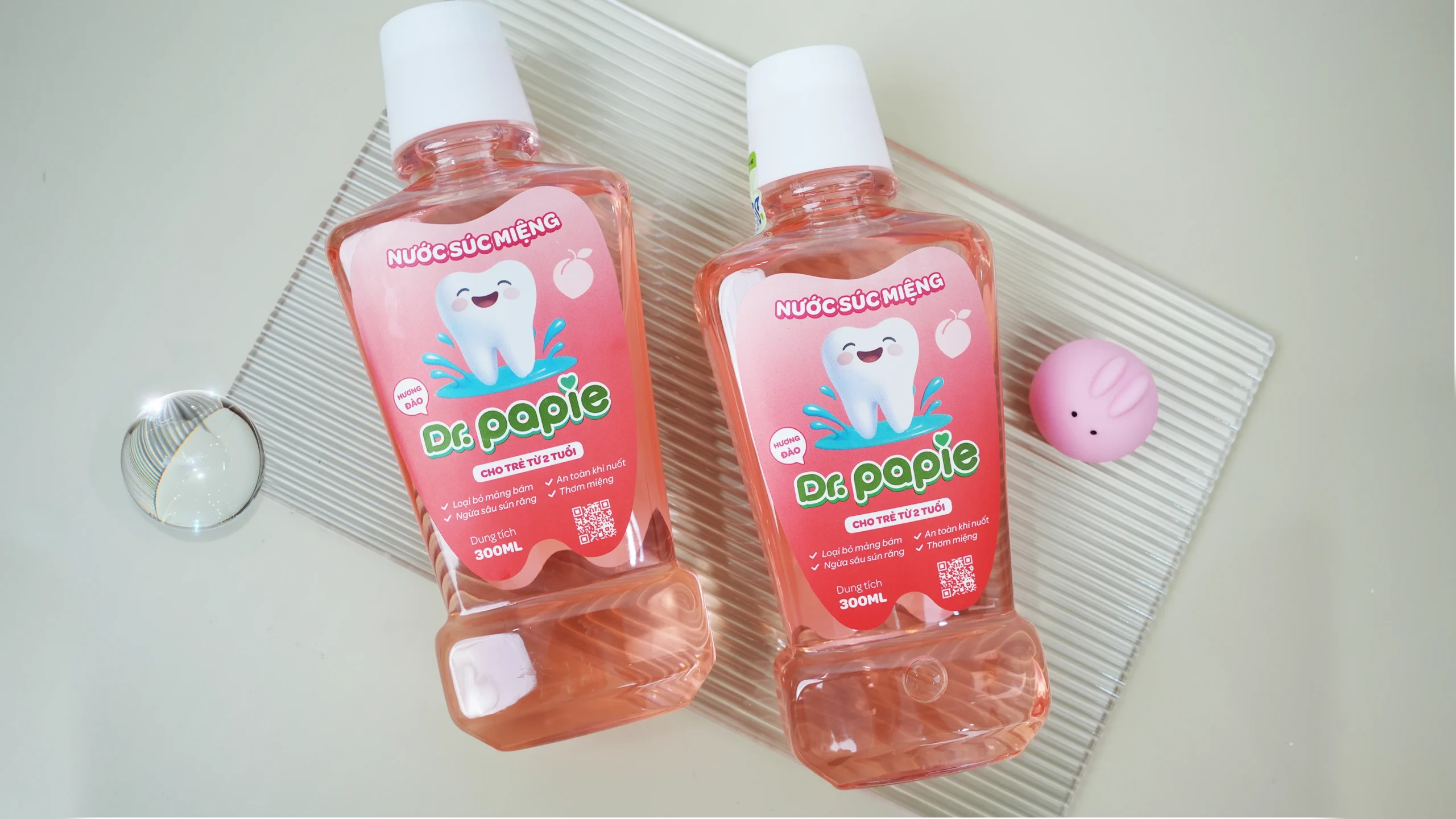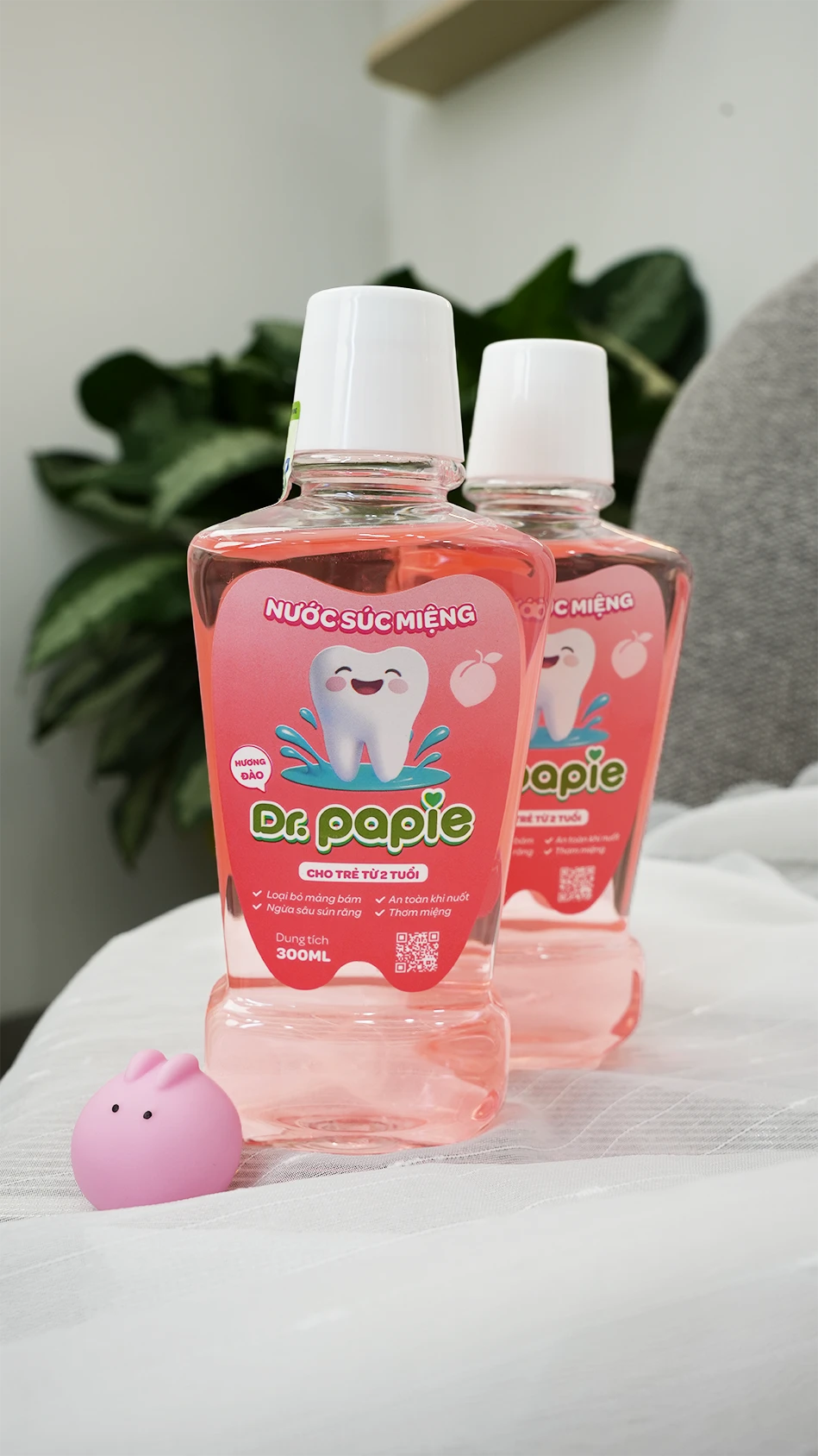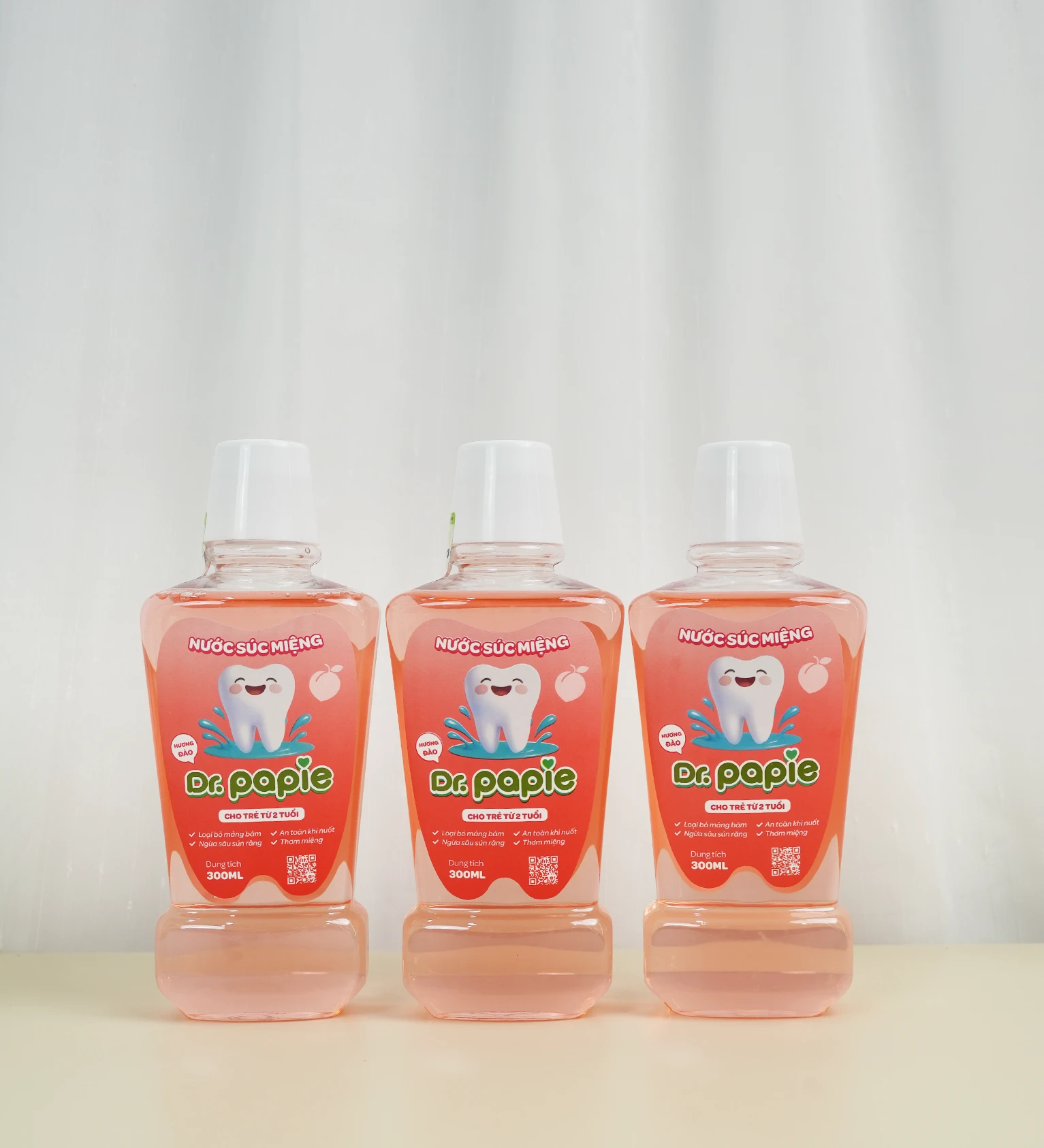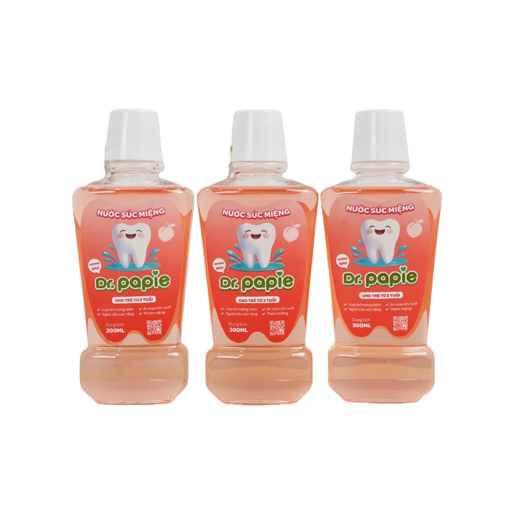 - Vị ngọt nhẹ, hương đào dễ chịu kích thích vị giác khiến bé thích súc miệng hơn