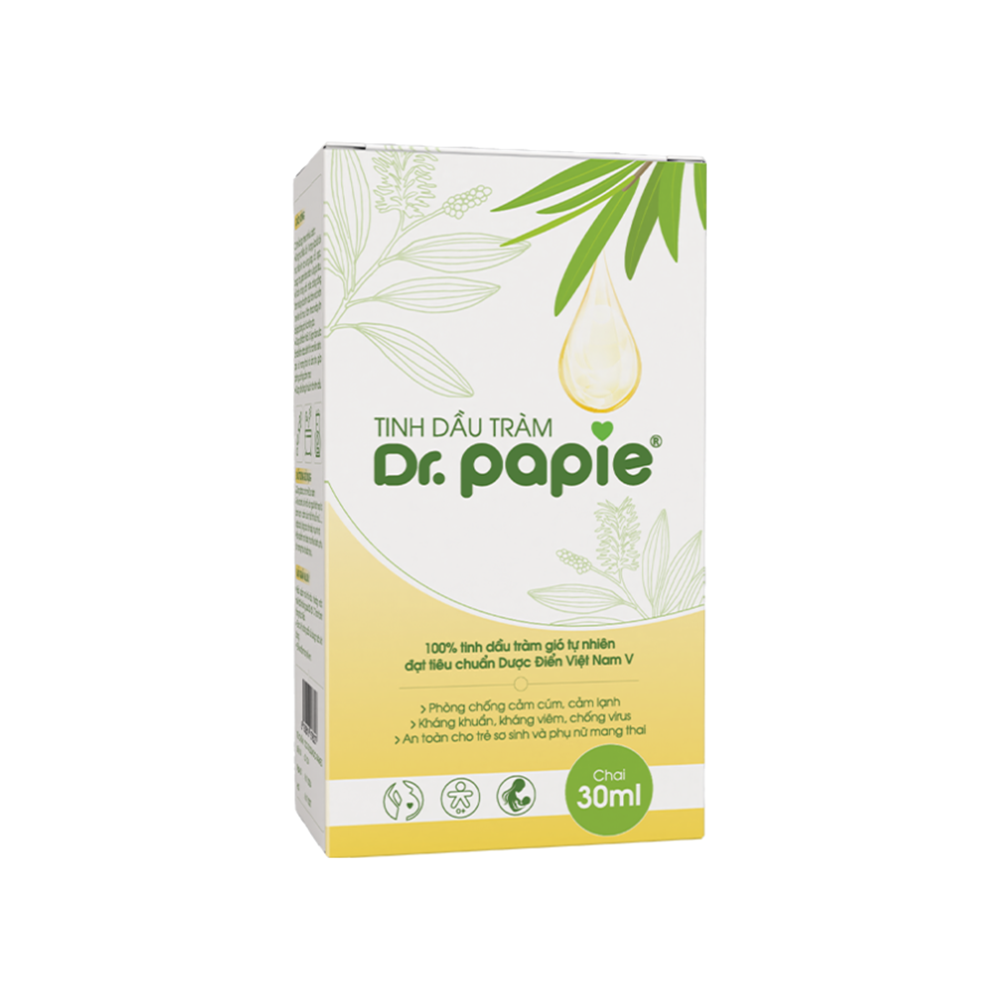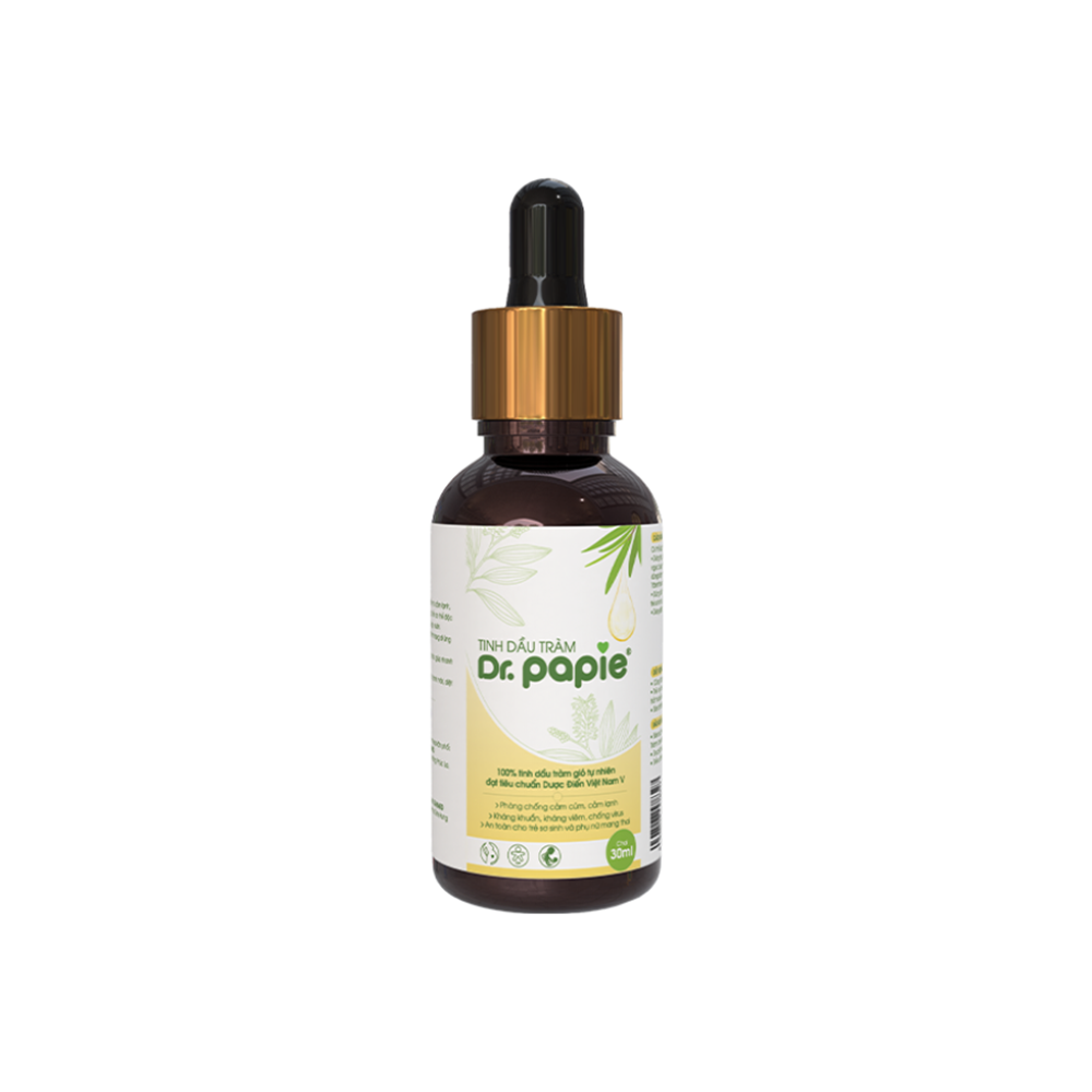 Tinh dầu tràm Dr.Papie chứa 100% tinh dầu tràm gió tự nhiên, Sản phẩm Đạt chuẩn Dược Điển Việt Nam V – Tiêu chuẩn Quốc gia về chất lượng tinh dầu tràm gió: